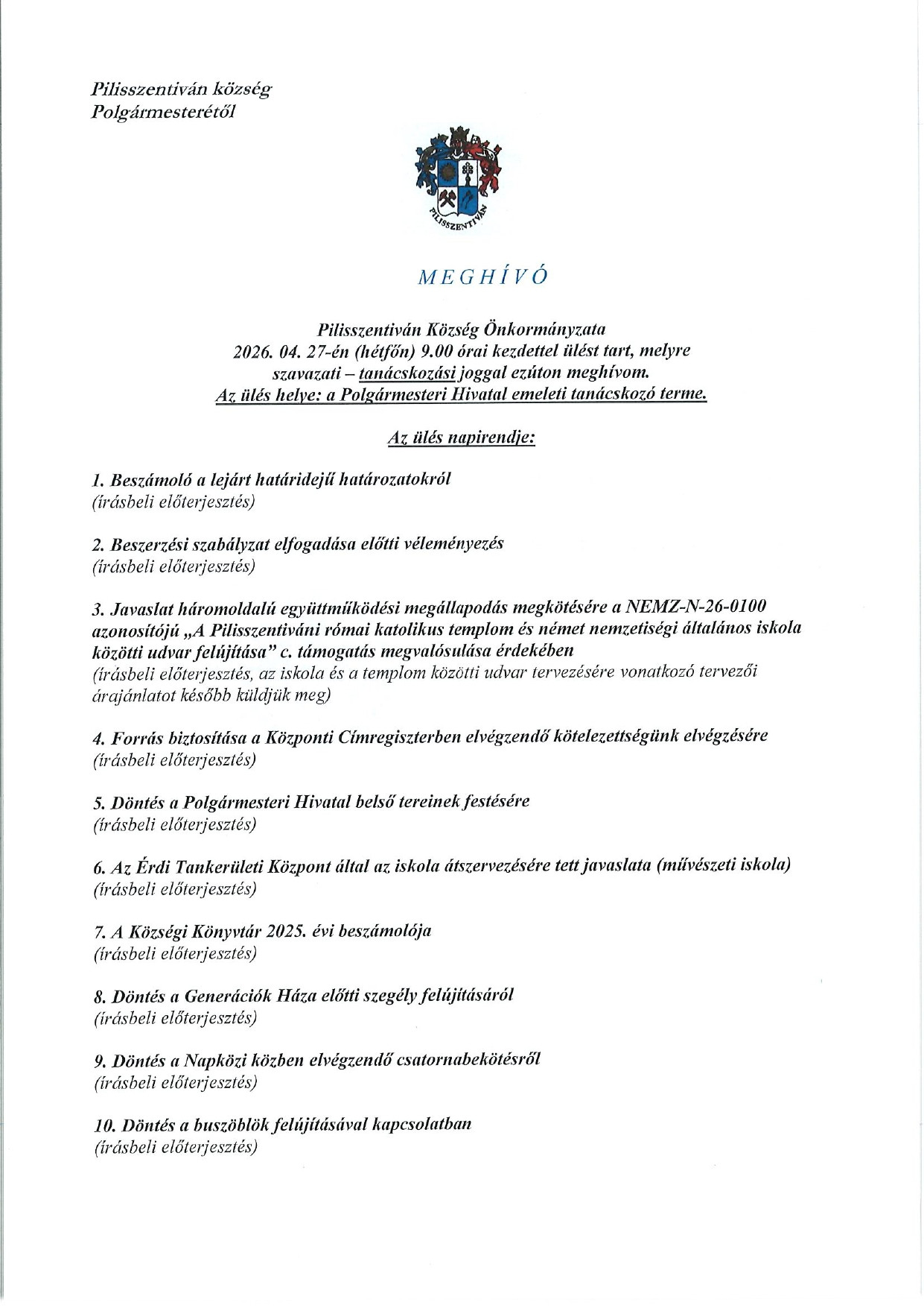 2026. április 12-én 6.00 órától 19.00 óráig tartjuk az ORSZÁGGYŰLÉSI KÉPVISELŐK VÁLASZTÁSÁT.