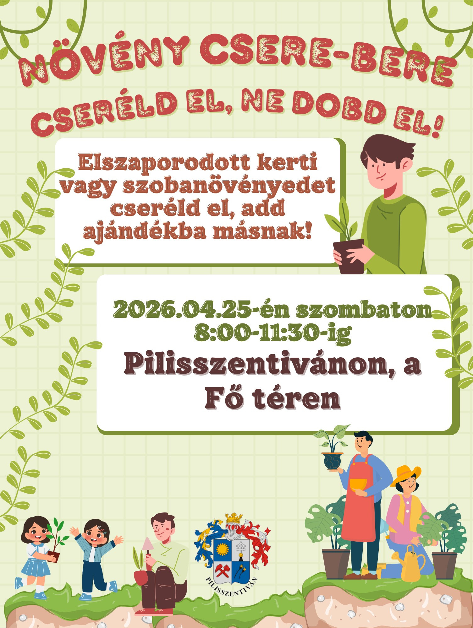 Elszaporodott kerti vagy szobanövényedet cseréld el, add ajándékba másnak! 2026.04.25-én szombaton 8:00-11:30-ig Pilisszentivánon, a Fő téren
