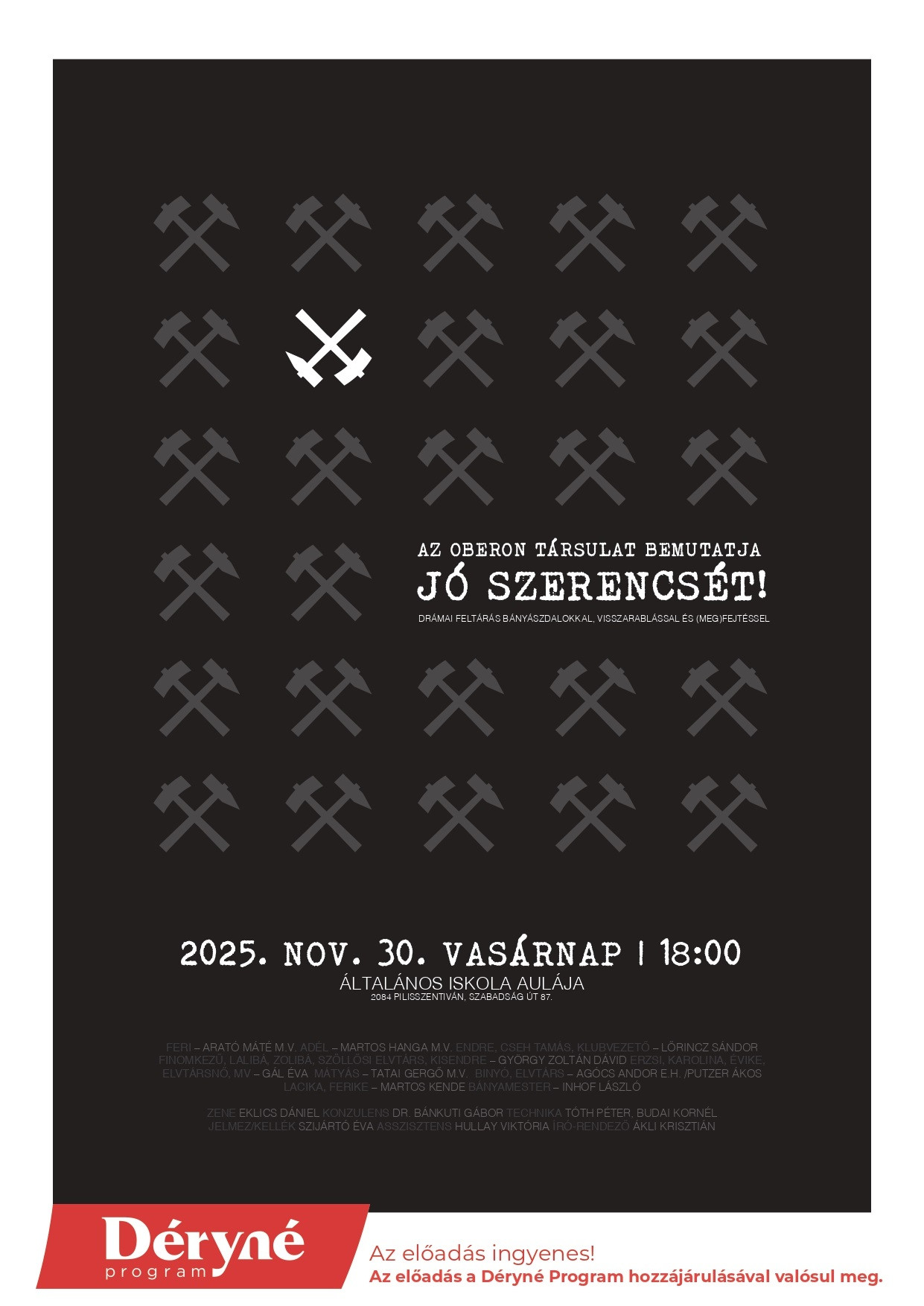 A Déryné program támogatásával kerül megrendezésre november 30-án 18.00 órakor az Oberon Társulat: Jó szerencsét! című színházi előadása.