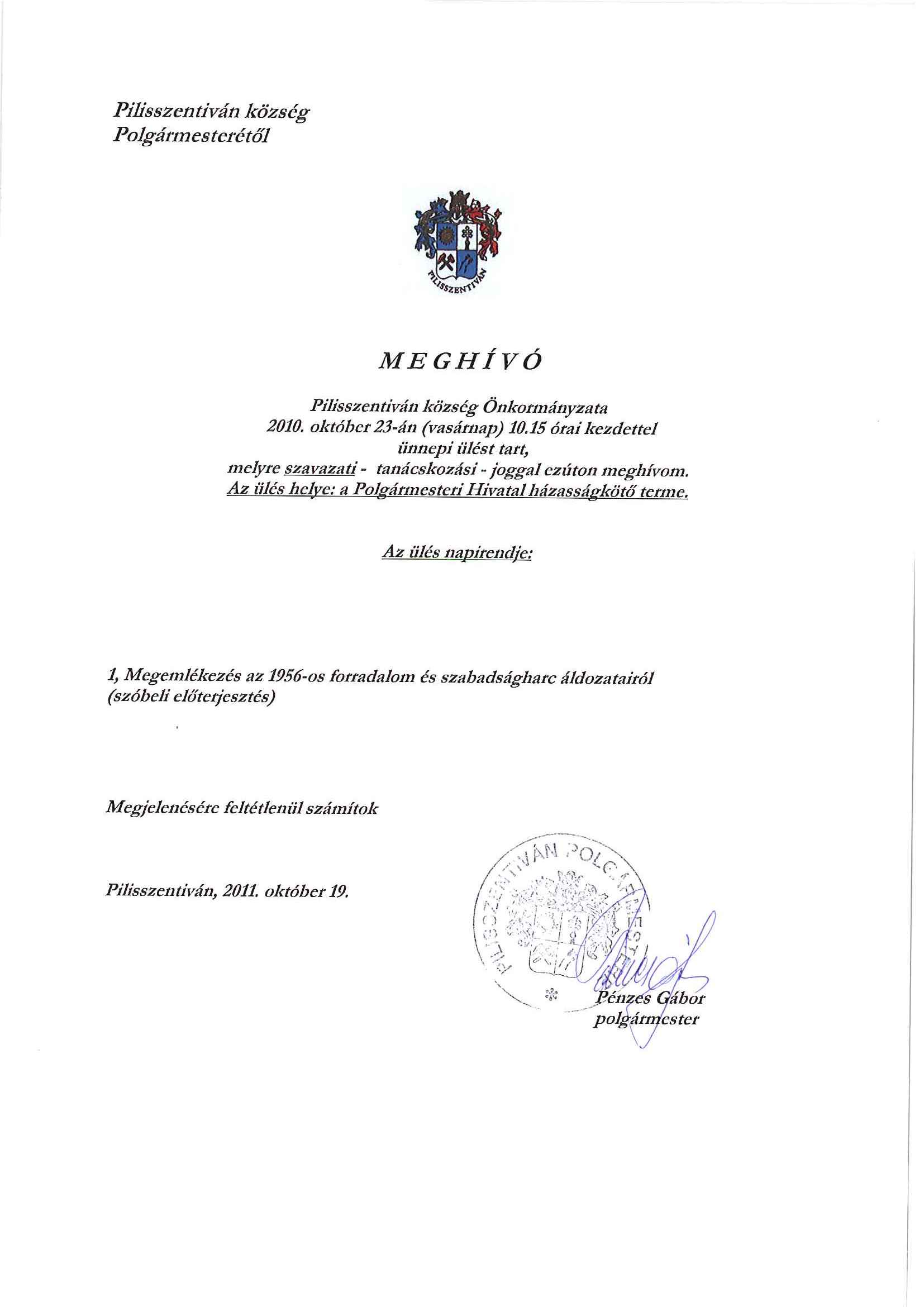 Pilisszentiván Község Önkormányzata tisztelettel meghívja Önt és kedves családját