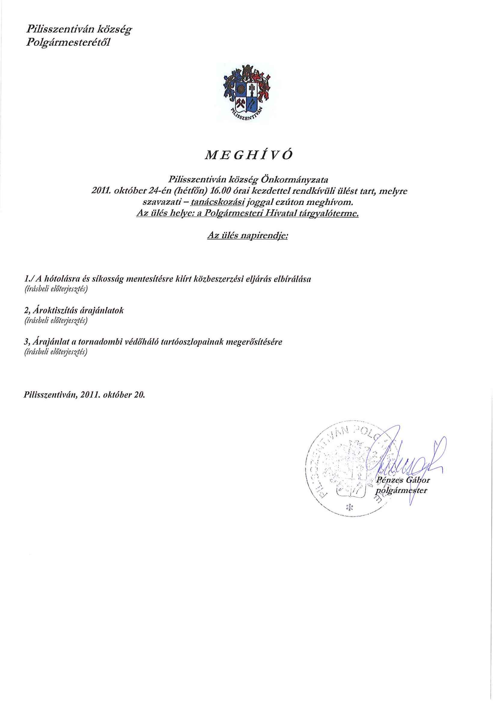 2011. október 23-án (vasárnap) 10.30 órai kezdettel az
