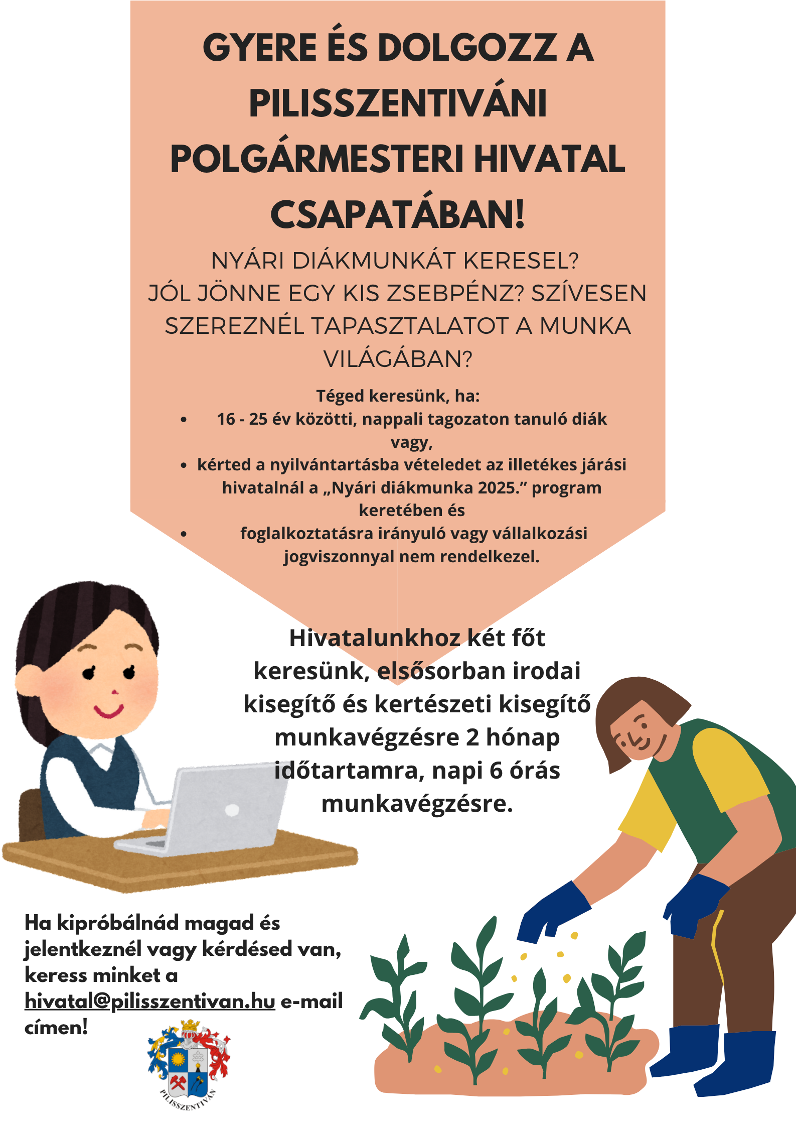 Munkalehetőség DIÁKOKNAK a Polgármesteri Hivatalban