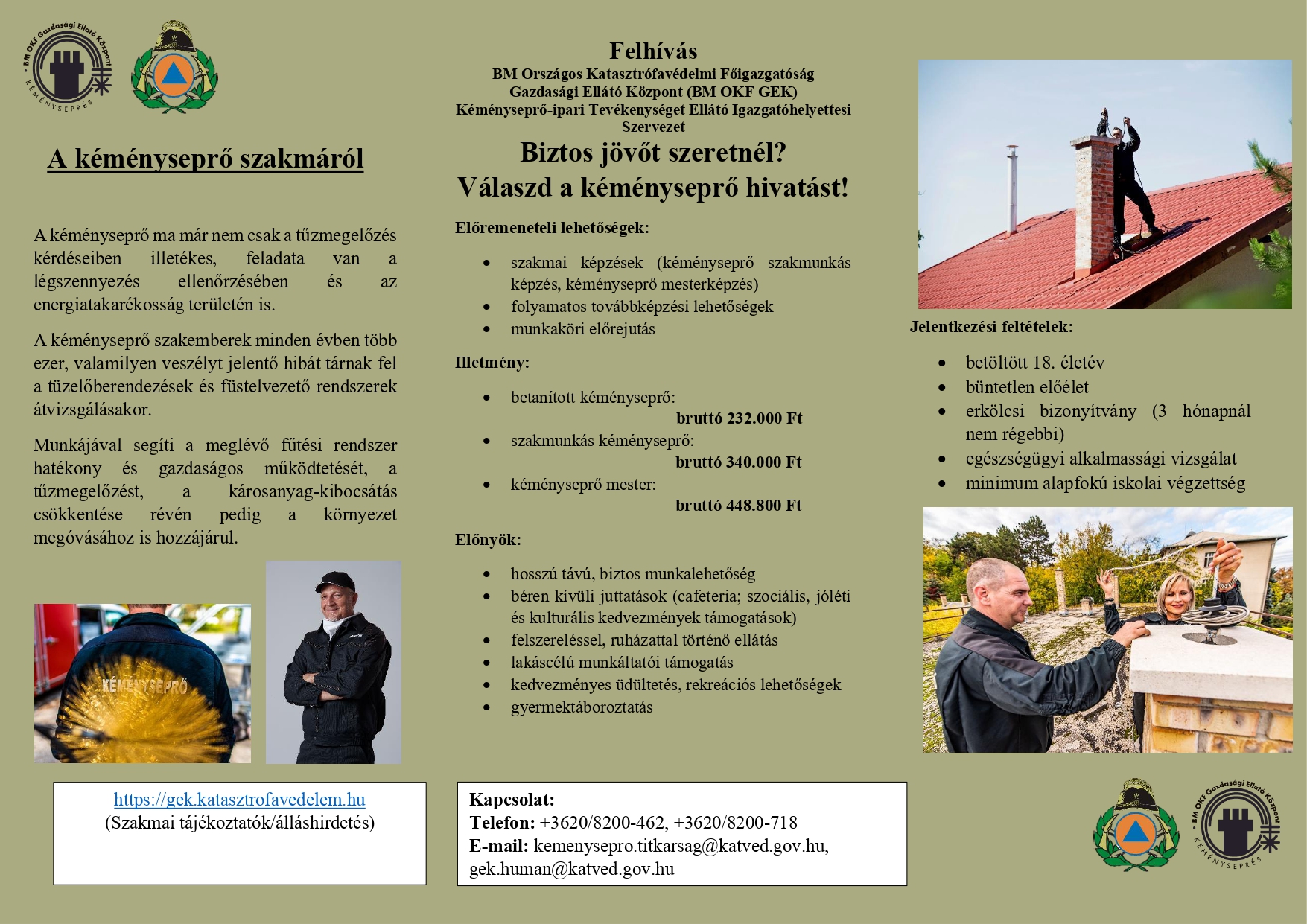 BM Országos Katasztrófavédelmi Főigazgatóság Gazdasági Ellátó Központ (BM OKF GEK) Kéményseprő-ipari Tevékenységet Ellátó Igazgatóhelyettesi Szervezet kéményseprő szakmunkásokat és betanított munkásokat keres. Kattintson a részletekért!
