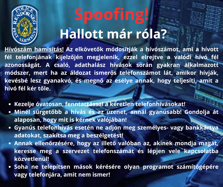 A rendőrség figyelemfelkeltő plakátokon hívja fel a lakosság figyelmét arra, hogy a különböző online platformokon elkövetett csalások igen gyakoriak. A rendőrség arra kér mindenkit, hogy a linkekre történő kattintásokkal, ismeretlen programok telepítésével legyünk körültekintőek. Telefonon, a rendőrség nevében küldött sms üzenetekkel is történhet csalás, ill. adathalászat.
